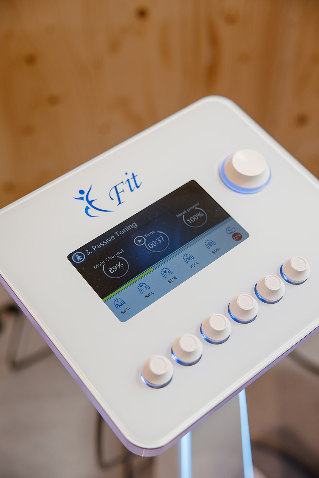 Na de actieve training krijg je nog een micromassageprogramma om gespannen spieren los te maken of een pijnreducerende impuls.